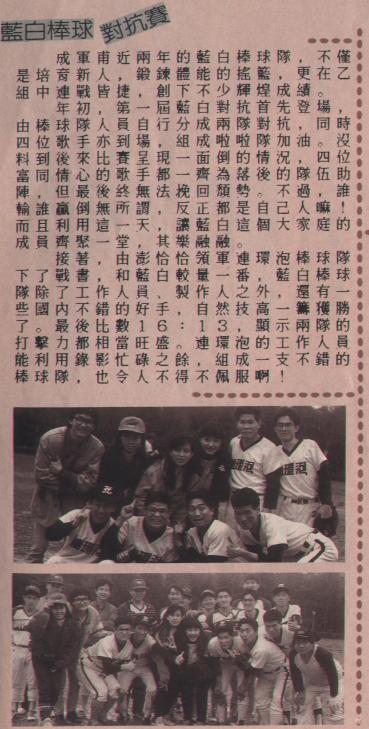 藍白棒球對抗賽〈資料來源:藍白音樂雜誌1990〉
