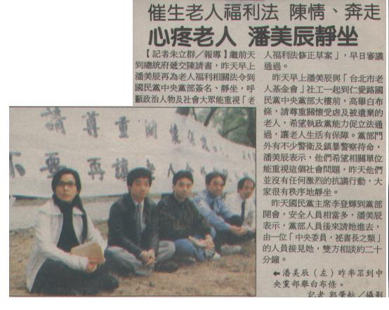 催生老人福利法 潘美辰漂亮出擊〈資料來源:民生報、中國時報1996〉